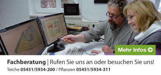 Nun addieren Sie diese drei Werte und erhalten die Gesamtquadratmeterzahl, die Sie an Teichfolie benötigen. Beachten Sie bitte, dass die Teichfolie an allen Seiten mindestens 50 cm länger und breiter ist, damit der Kiesrand diese stabilisieren kann.