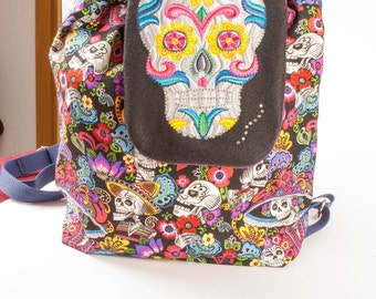 Skull "dia de los muertos" skelett backpack gothic flower embroidery strass 18 inch