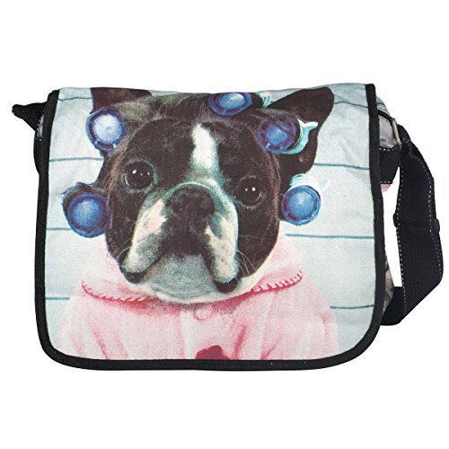 Baumwolle Umhängetasche Schultertasche Medium Damen Hunde Messenger Bag