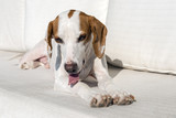 Hundehaare im Bett-kleiner Hund tobt im Bettzeug