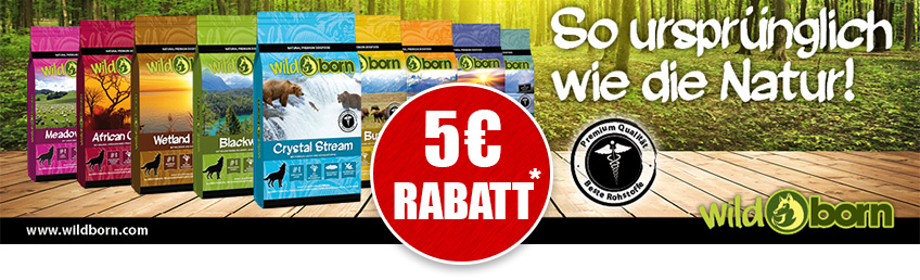 Wildborn ist ein Hersteller von Nass- und Trockenfutter für den Hund. Auch im Programm sind Nahrungsergänzungsmittel sowie Knabberkram für den Vierbeiner.